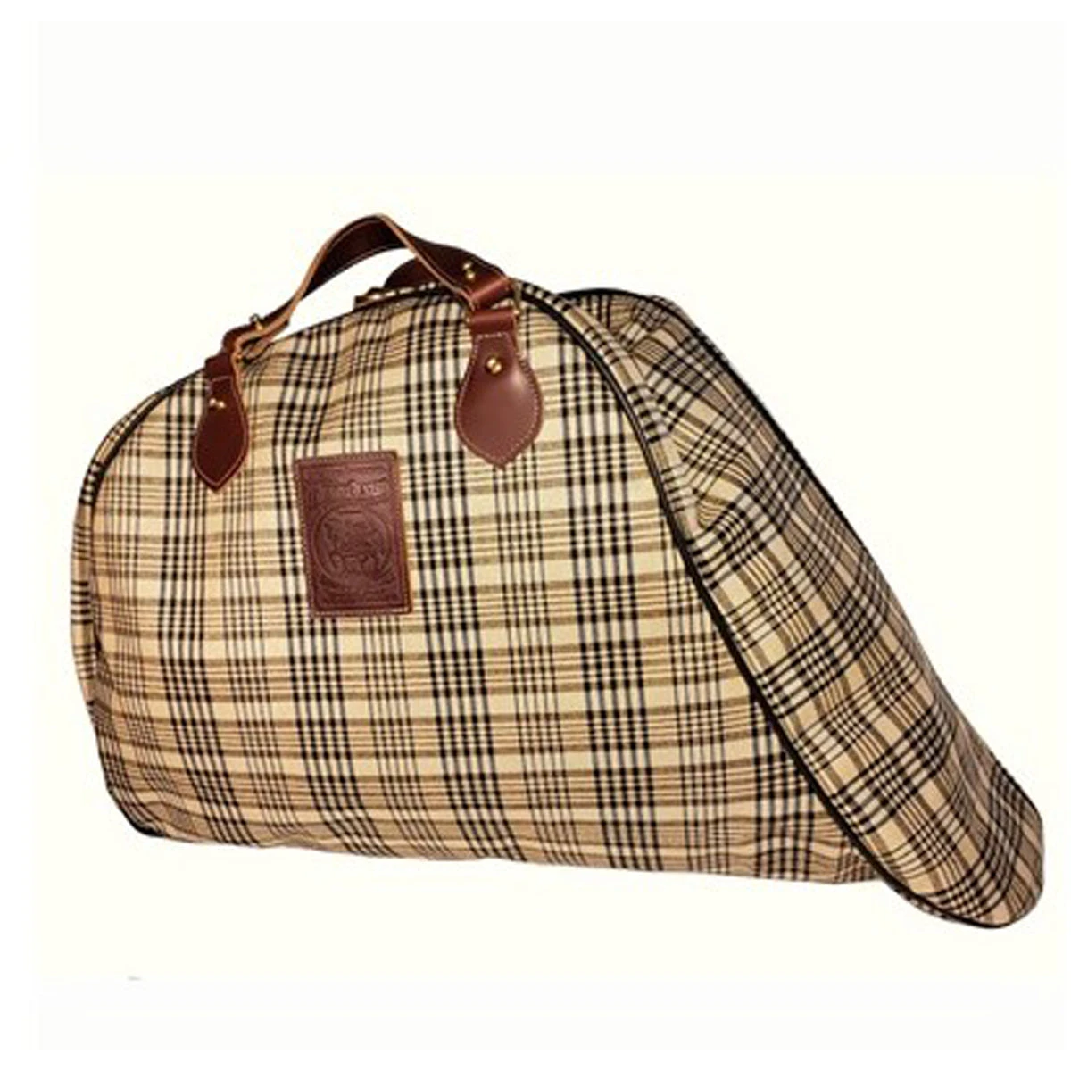 5/A Baker® All Purpose Saddle Carrier is made with Original Baker Plaid, and trimmed with the finest quality leather. Traditional bag-type jump style, with a straight zipper that runs from pommel to cantle across underside of saddle, leaving a large extra space between flaps where you can store soft, lightweight items.