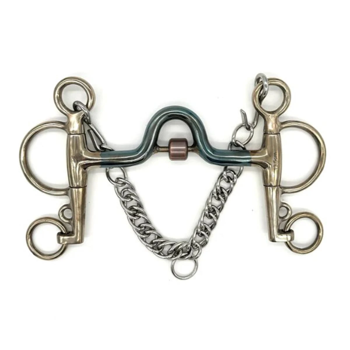 Made from robust BLU Steel, this Pelham bit is durable and functional. It combines snaffle and curb bit actions, allowing for dual reins attachment. This versatility is beneficial in various riding disciplines where control and precision are essential.