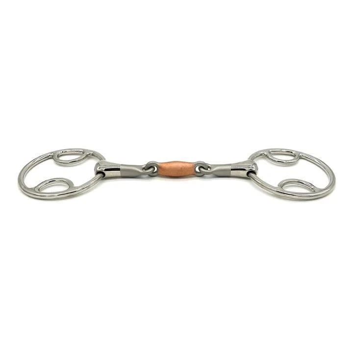 Thoughtfully crafted for a kinder connection, the Copper LinkX Beval Bit combines angled joints with an elongated Copper Link to distribute gentle, continuous pressure across the tongue. The link’s rounded profile makes it easier for horses with low palates to accept, avoiding the discomfort some standard bits can cause.