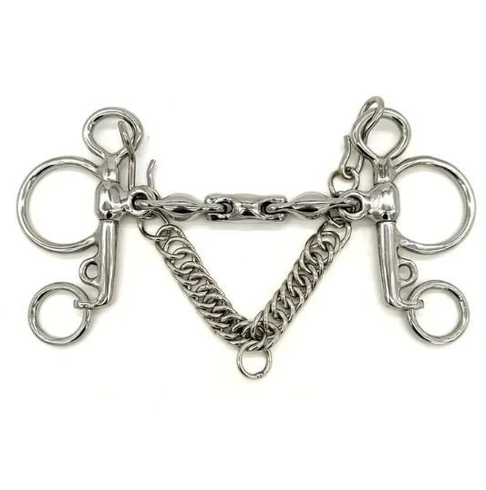 By removing vertical play, this “pinchless” design helps avoid any unpleasant pinching or collapsing that can occur in standard Waterfords. The locking mechanism also creates a more accurate contact, as the mouthpiece’s focused action provides clear and consistent signals to the horse. The series of smooth oval links still discourages horses from bracing or leaning, as there is no rigid surface to latch onto.