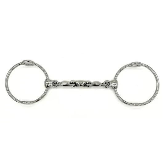 By removing vertical play, this “pinchless” design helps avoid any unpleasant pinching or collapsing that can occur in standard Waterfords. The series of smooth oval links discourages horses from bracing or leaning, as there is no rigid surface to latch onto. The locking mechanism further enhances contact, delivering a more focused mouthpiece action for accurate communication between horse and rider.