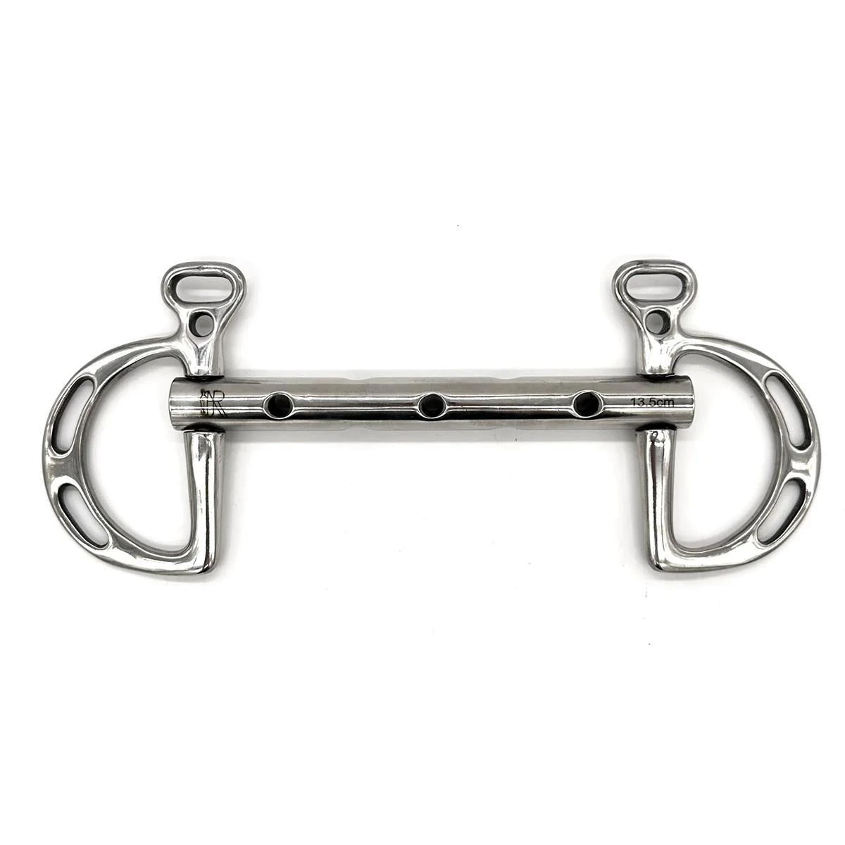 We love this soft and thoughtfully engineered bit from AJR! The Whistle mouth features a round pipe mouthpiece with holes that accumulate saliva to keep the horse’s mouth very wet and engaged. The straight mouthpiece is generally a strong mouthpiece when combined with the leverage Kimberwick cheek piece. This bit is ideal for horses that tend to be heavy in the rider’s hand and lean on the bit.