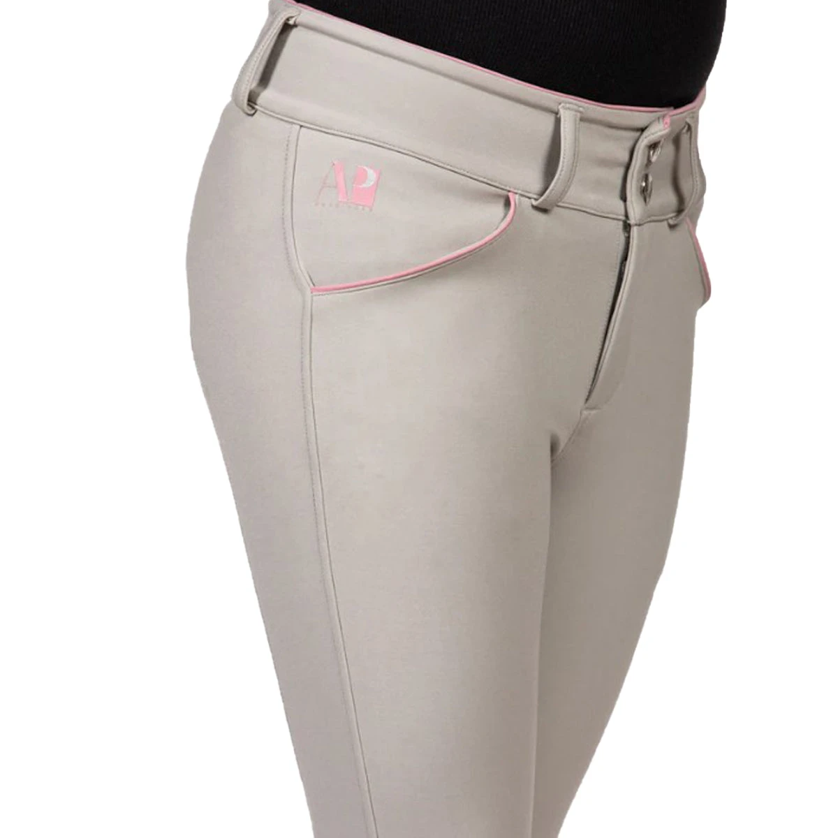 Make a Statement with These Stunning Beige Breeches! Get ready to turn heads with these fashionable beige breeches! Featuring bubblegum pink piping along the pockets and waistband, as well as a striking pink silicone logo on the knee patches, these breeches will keep you firmly in the saddle. And the softest fabric ensures you’ll be comfortable all day long. Available in sizes 6 to 16, you’re sure to find your perfect fit in no time. So, get ready to impress everyone in the arena!