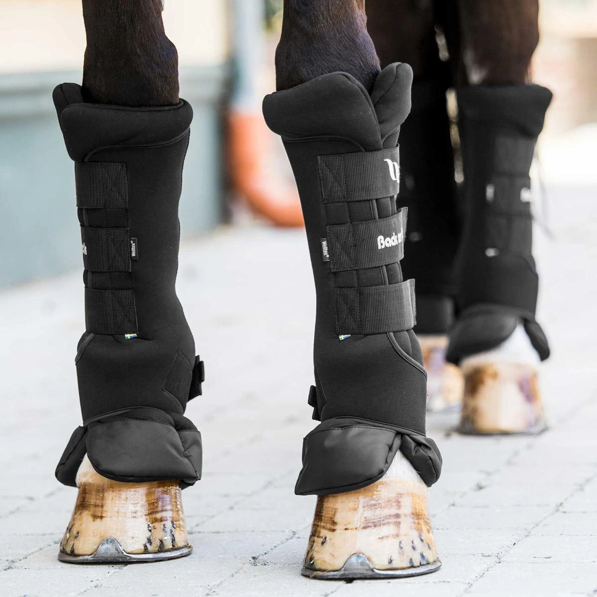 They are slightly higher at the top to minimize pressure on the tendon and provide increased freedom of movement to the horse’s legs. The inner pad has been fitted at the bottom with a reinforced water-repellent fabric that covers the top of the hoof, does not collect shavings, and stays dry.
