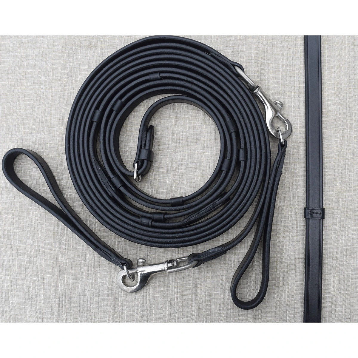 Our Black Oak all-leather Draw Reins are available in Black with stops or Brown without stops.