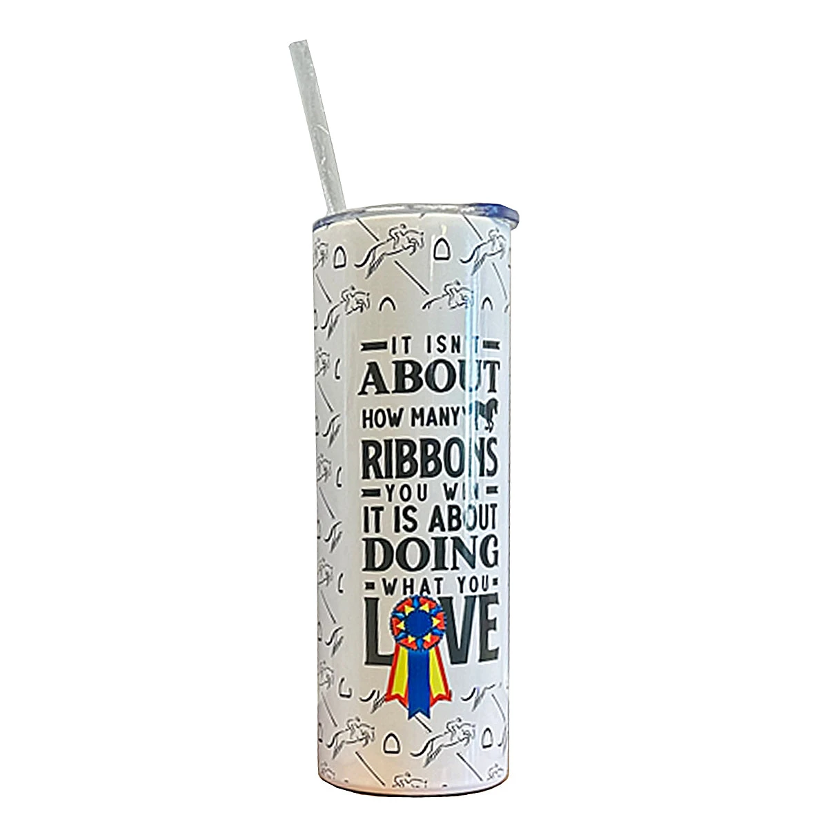 We love the high-quality materials and equestrian flair of this tumbler! Perfect for both hot and cold beverages. This is a 20oz double walled stainless steel tumbler ideal for any horse lover.