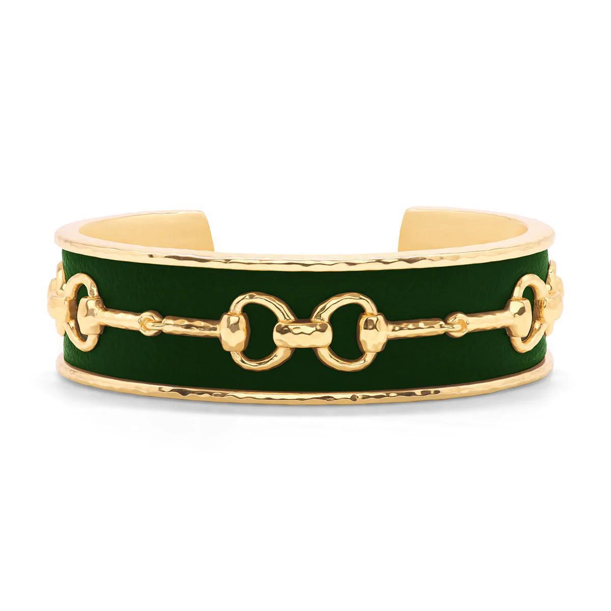 Richly hued and textural in forest green faux leather for layering into bracelet stacks or to stand alone, featuring our golden Snaffle Bit motif to represent the majesty of horses, unbound freedom and unbridled joy to carry with you, wherever you may roam.