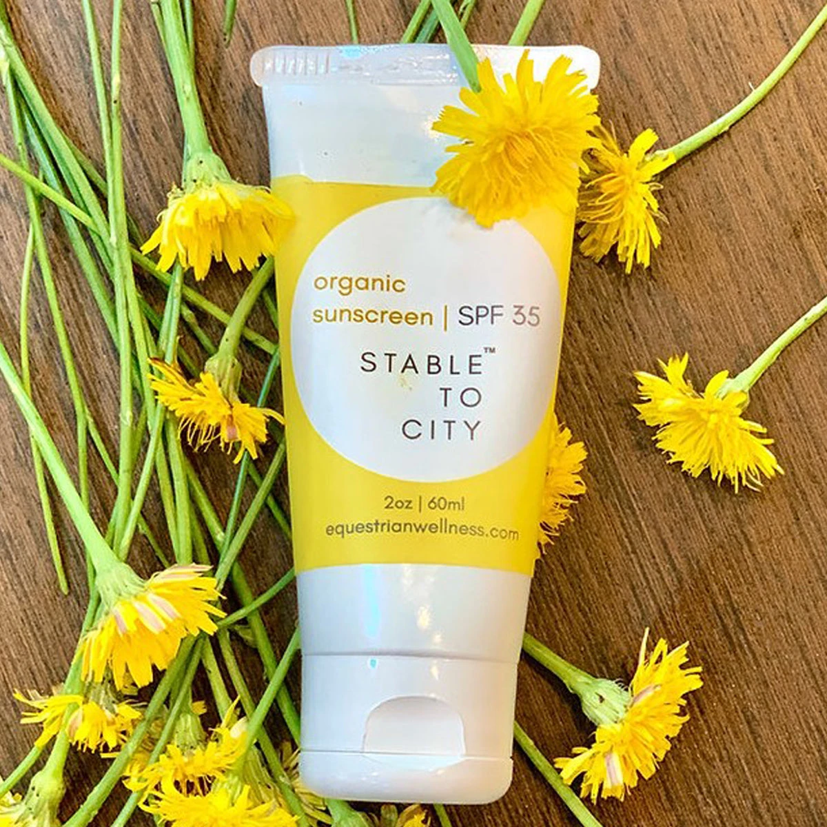 Introducing the Stable to City Organic Sunscreen | SPF 35! Featuring just six organic ingredients, this sunscreen is broad spectrum, & safe for everyone to use! The 2oz tubes are fragrance & chemical free as well as biodegradable & reef safe!