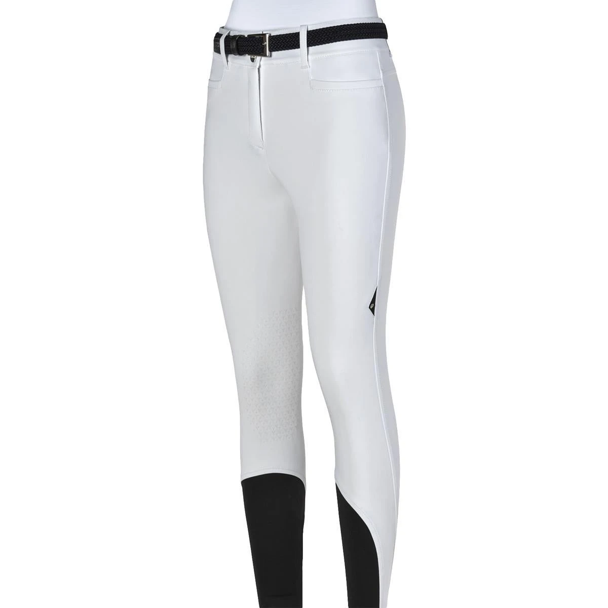 Made with Equiline’s B-MOVE 4 seasons bonded fabric 340g/m2, these high-waisted knee grip breeches are a must for every season. Their popular x-grip system offers all-day comfort for the rider. Contemporary design details include front and back pockets with Equiline written along left side of leg.