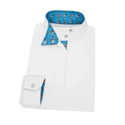We love Talent Yarn Straight Collar Show Shirts because they artfully combine the classic good looks of a crisp white shirt in the show ring with a colorful appeal. Paired with a show coat, the white front panel, collar, and cuffs make a crisp, clean presentation in the ring.