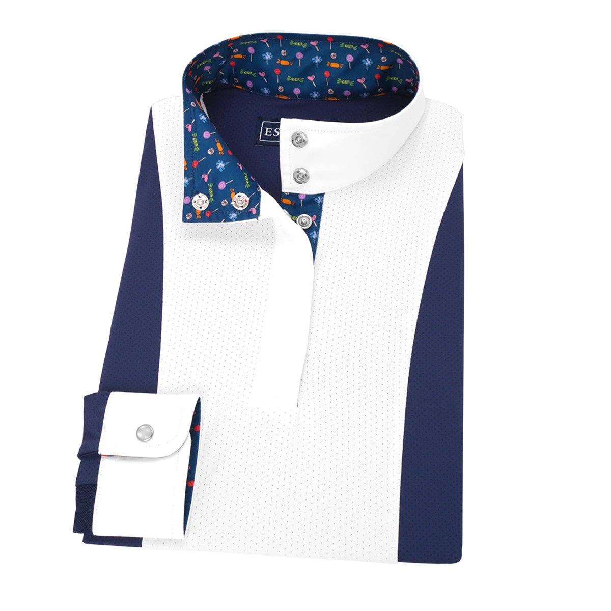 We love Luna Performance show shirts because they artfully combine the classic good looks of a crisp white shirt in the show ring with a colorful appeal. Paired with a show coat, the white front panel, collar, and cuffs make a crisp, clean presentation in the ring.