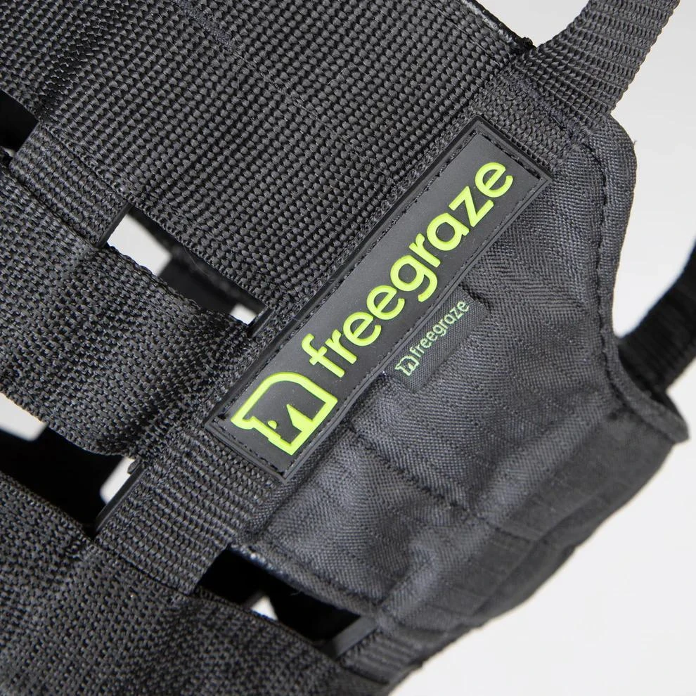 FreeGraze grazing muzzles are proven to help with controlled or restricted feeding regimes and special diets. The Comfort muzzle is cut back under the chin to avoid unnecessary pressure and improve the fit. The muzzle features a rubber base with a hole in the bottom through which grass can enter, reinforced nylon web bars which allow free air exchange and the anti-chafe padding around inside of the muzzle protects the delicate nose and chin. The fully adjustable harness benefits from anti-chafe padding and is fitted with a field safe fastening. A D-ring allows a lead rope to be attached. It is recommended that wear time is built up gradually.