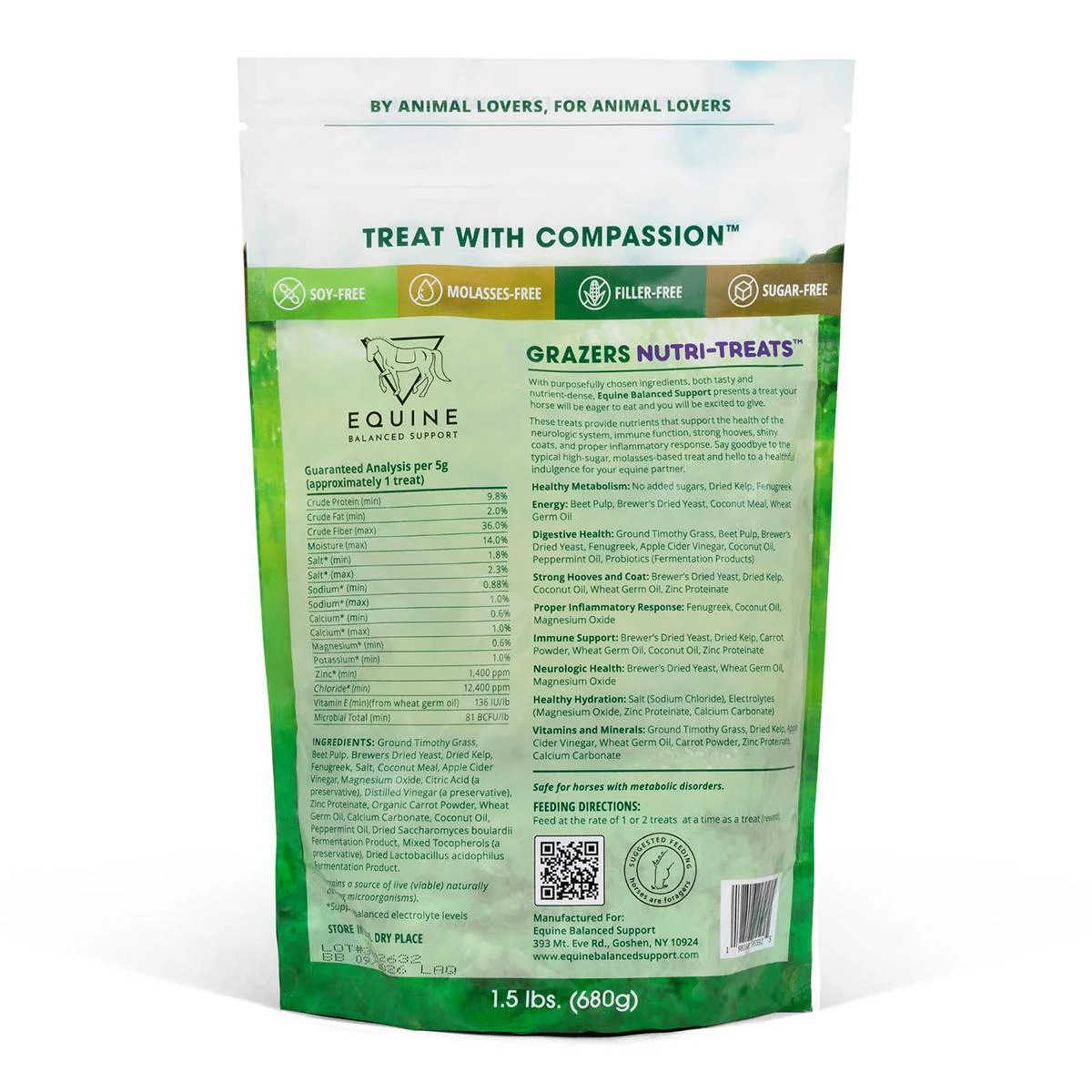 Offer 1–2 treats at a time as a reward or snack. Grazers are safe for higher quantities, focusing on rewarding calm and confident behaviors.
