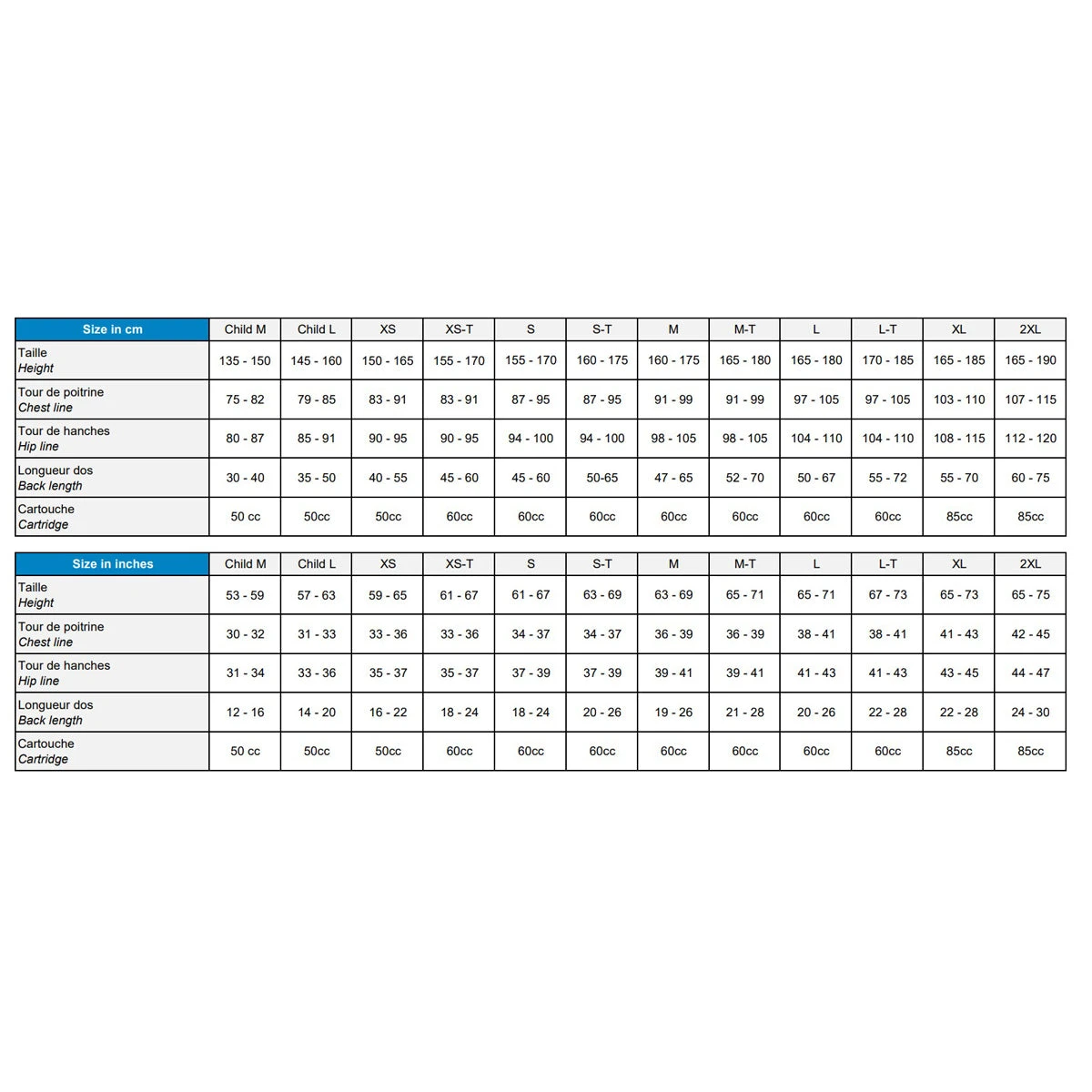 - Central zip: allows wearing the airbag alone