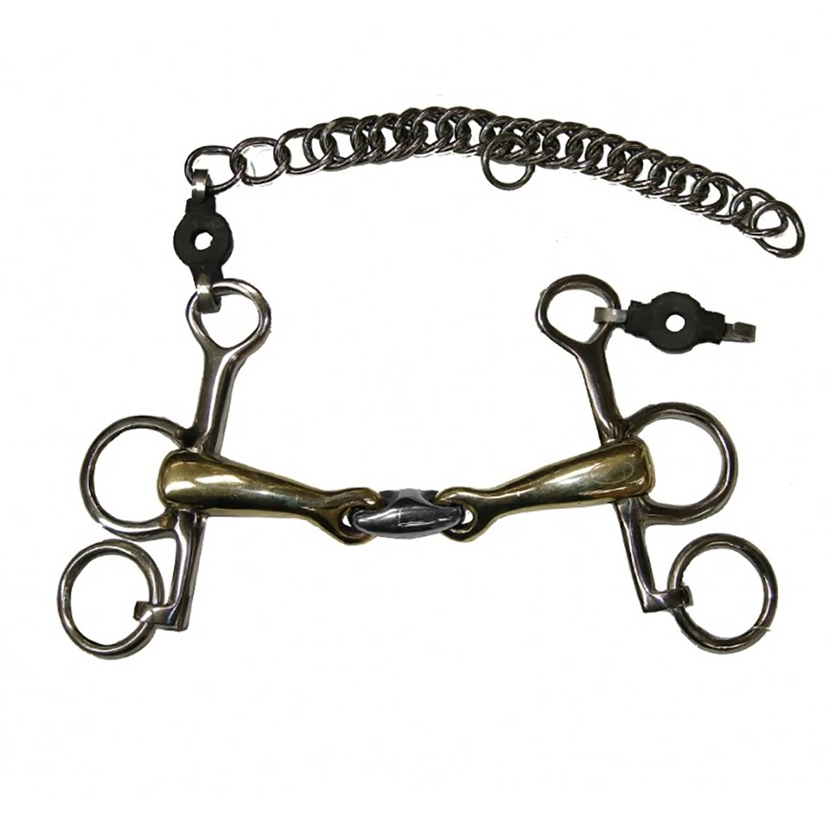 Every Pelham bit can be used directly with two reins, with bit loops or with four reins. Therefore, the curb chain action can be softened by using other curb chain types as leather or nylon ones.