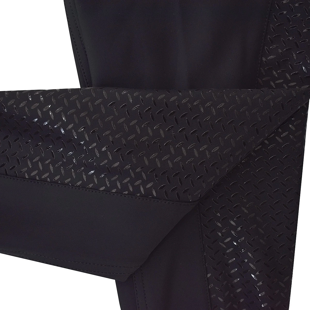Gabrielle’s features include two front slide-in pockets accented by silver grommets, two decorative back zipper pockets, contrasting piping, a silicone full seat, and Lycra sock bottoms.