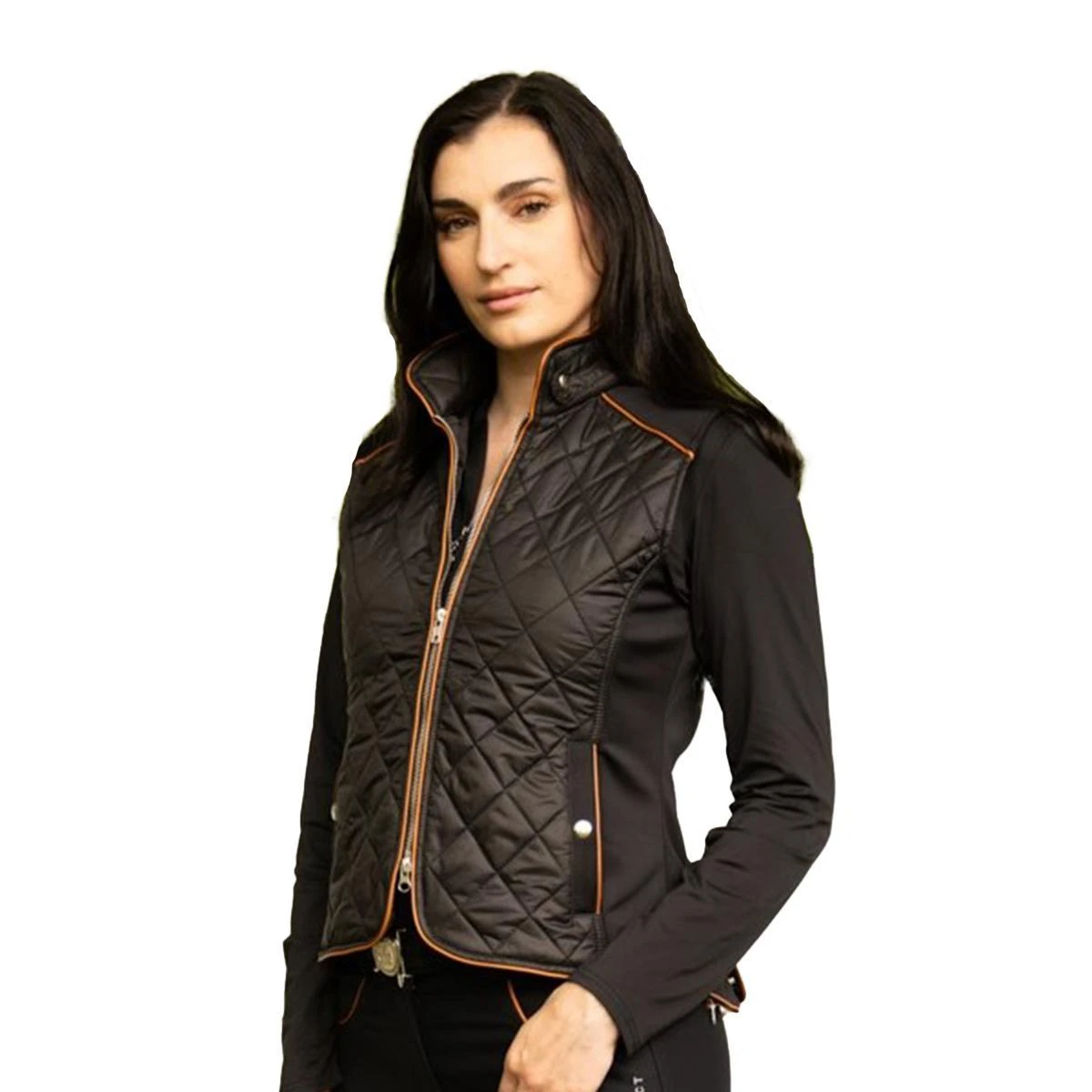 Elevate your style with the KL Select Taylor women’s riding vest. An ideal layer for multiple seasons, this essential piece combines modern design and elegance with practicality, making it a must-have for any wardrobe. The sleek, tailored fit accentuates your figure while allowing for freedom of movement – in and out of the saddle. The Taylor vest features diamond shape quilting, contrasting faux leather piping, and 4-way-stretch side panels.
