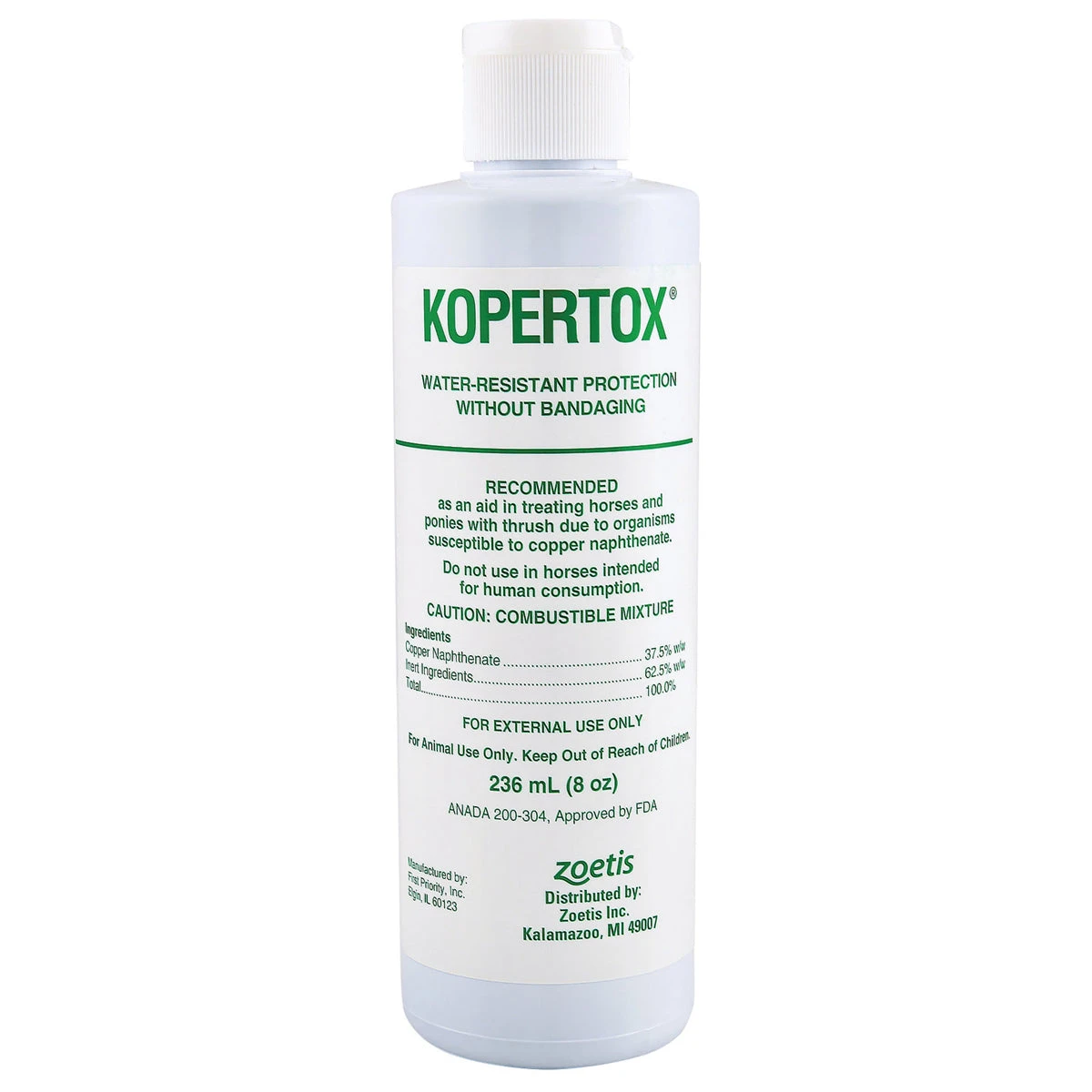 Kopertox (Copper Naphthenate), aids in treating horses and ponies with thrush. Water-resistant protection without bandaging.