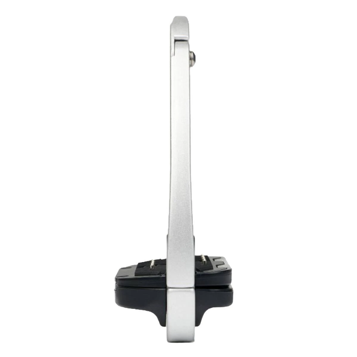 An integrated hinged arm has a two-stage release system, preventing unintentional opening. The spring loaded arm locks into the base of the main frame meaning that when under maximum pressure, such as landing over a fence, the rider’s weight is spread evenly across the stirrup, preventing the outside dropping and flexing. When pressure is put onto the arm of the stirrup, the arm releases allowing the foot to come out of the stirrup and preventing it getting stuck. The stirrup arm breakout force = 36N (equivalent to 3.62kg) in testing meaning enough resistance to stop it opening unintentionally but will release when needed.