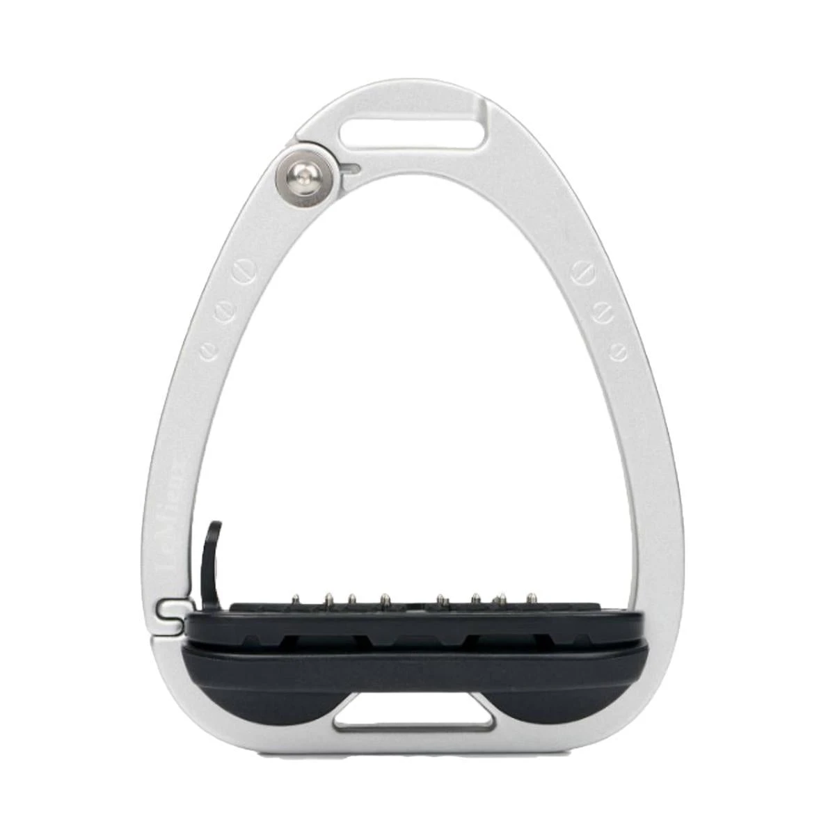 The footplate is supported by a twin balance arch system that distributes the weight evenly across the base of the stirrup frame. The apex of the frame is recessed and off-set, encouraging a 45 ¼ outward orientation which makes it easier for the rider to locate the optimum angle for the foot and regain a lost stirrup.