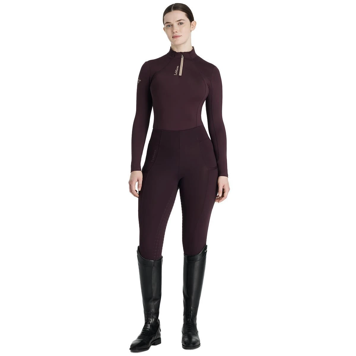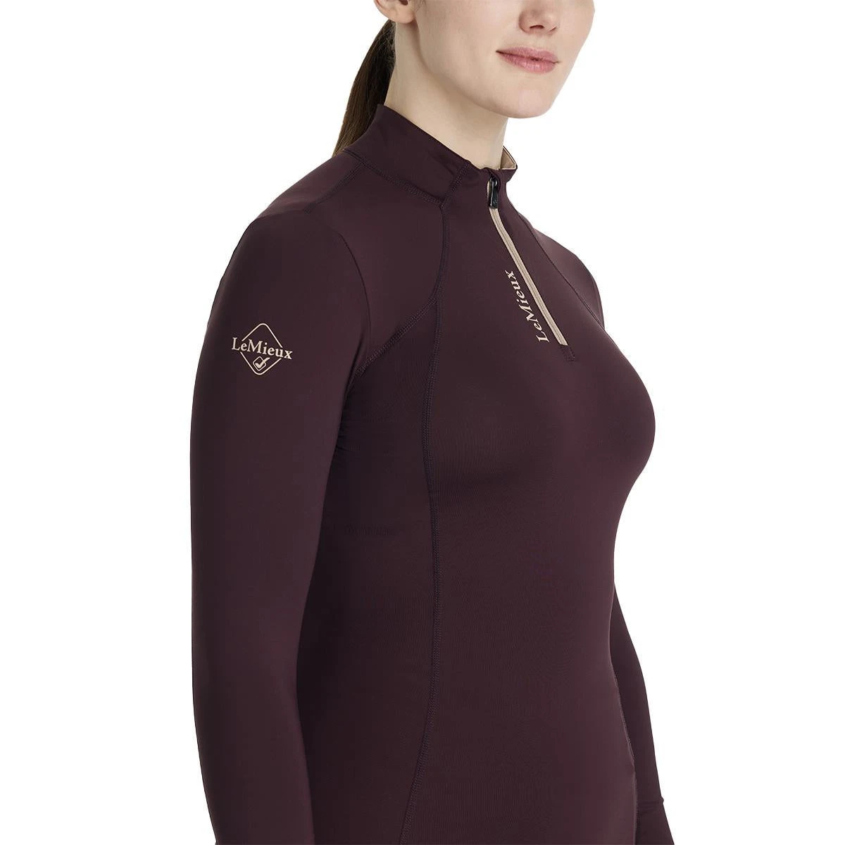 Do it all in this UV50+ quarter zip base layer. Its technical fabric regulates your body temperature, with vented underarms to keep you cool and dry. Contrast matte logo print is a subtle sign of the quality you expect from LeMieux.Â