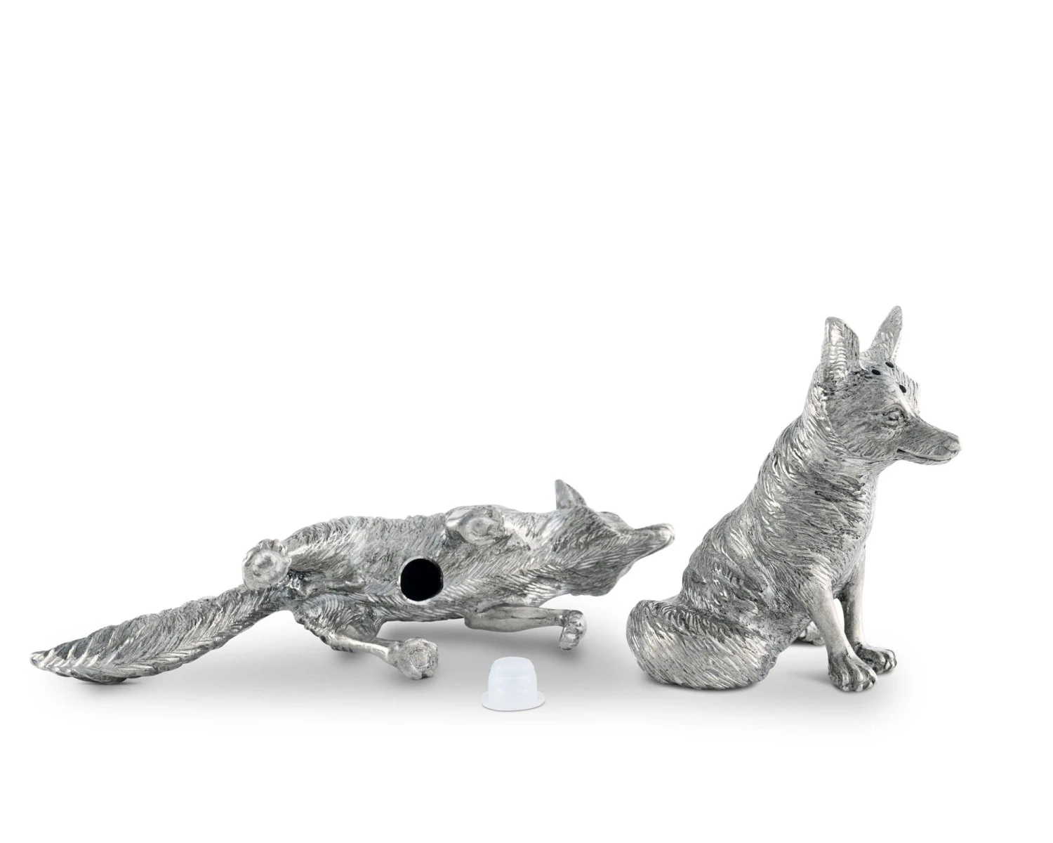 Fox Salt and Pepper Set is crafted in richly detailed , luxury grade pewter. Add just a bit of your imagination to see their soft red fur, hear their gentle yips. These crafty critters are a perfect table accent for homes where hunting, nature and the call of the wild are everyday passions.