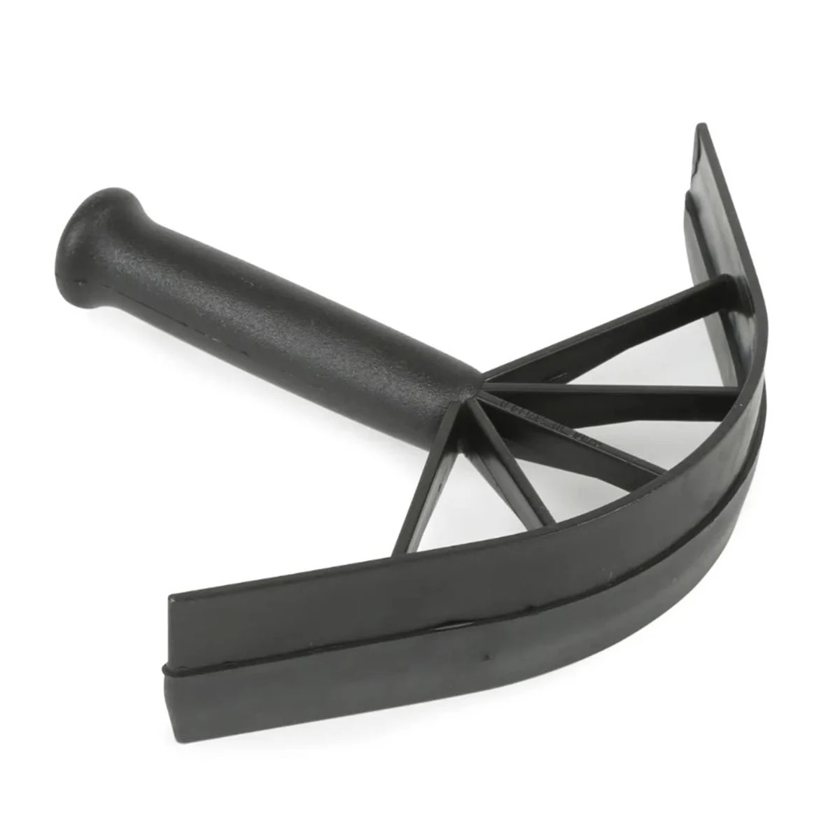 Sweat scraper with a plastic body and rubber on one side to remove excess water from the horse’s coat.