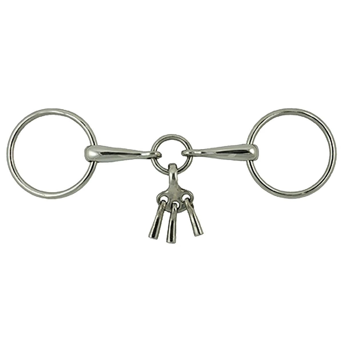 Stainless steel Player Ring Snaffle Bit with 5″ double jointed mouth with attached player.