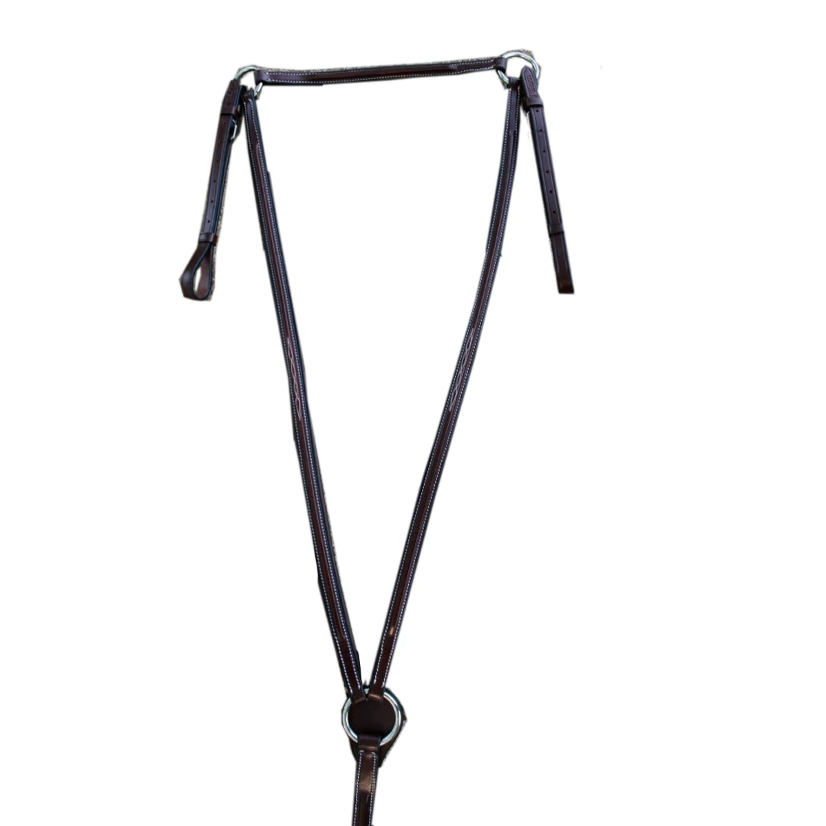 This breastplate comes in a round raised or square raised style with fancy white stitching. Â