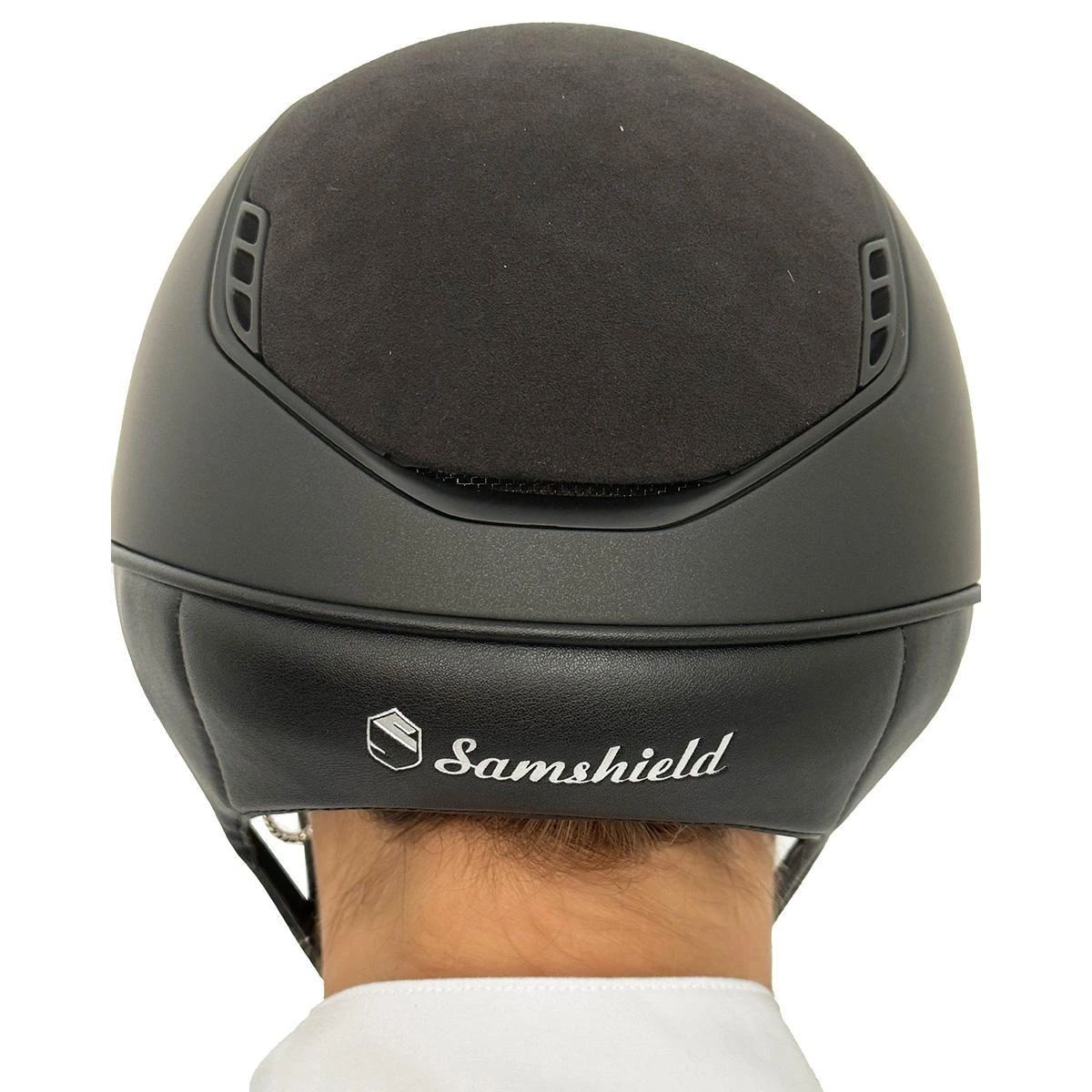 Level up your helmet game with the Miss Shield 2.0 with alcantara and crystal accents! This Samshield helmet offers dark dramatic Jet Black Hematite crystal accent at the Blazon, dark ventilation rails, elegant alcantara top and band finished with the dark line look of this stylish helmet. The dark crystals offer an upgraded level of understated elegance, with the Miss Shield style helps keep the riders face shielded from the sun’s harmful rays.Â