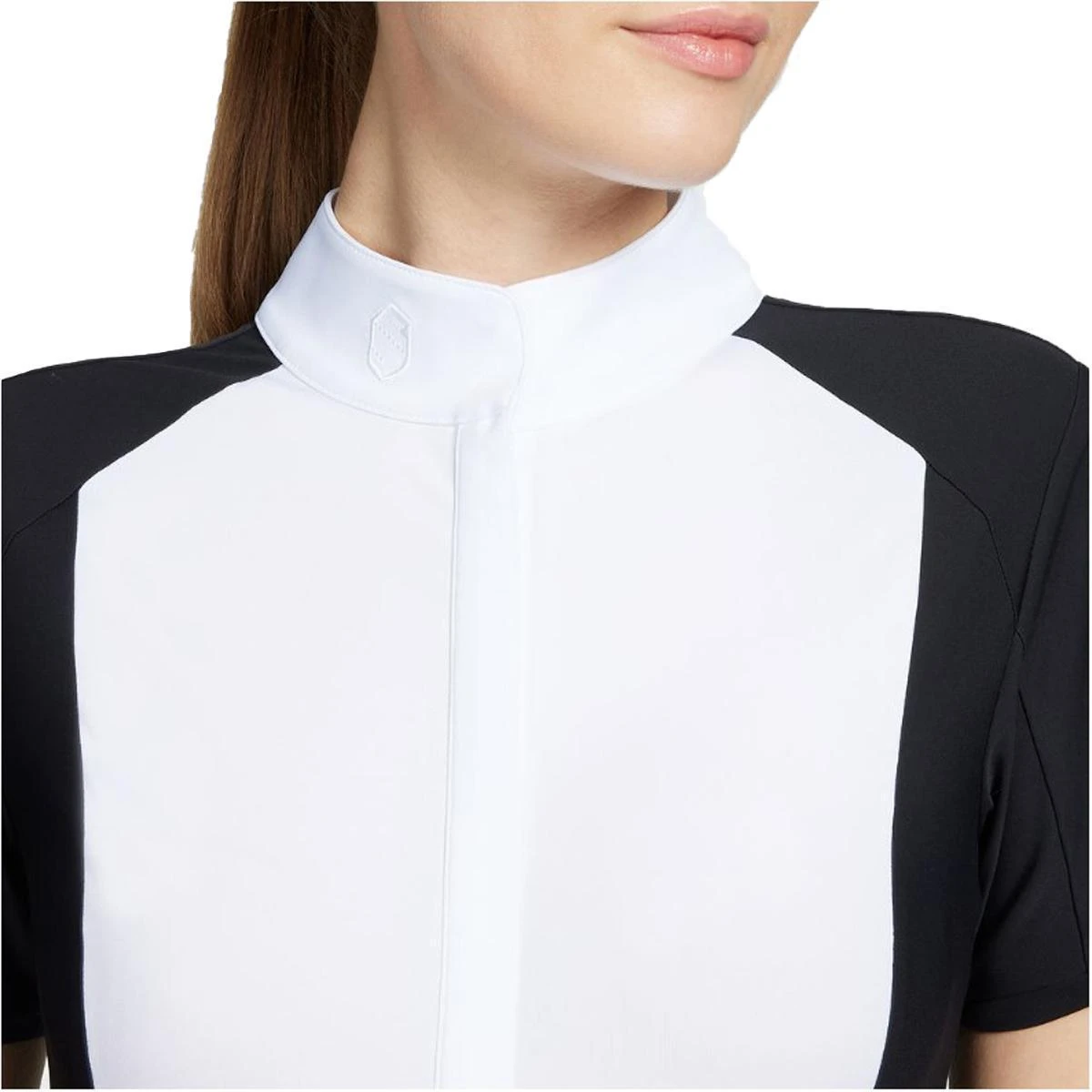 We love the Samshield Women’s Gretta Sport Short Sleeve Show Shirt because of its elegant and classic two color design. It not only looks great but it helps you feel great as well! It is made of a breathable fabric sure to keep you cool while you are in the ring and in the saddle.