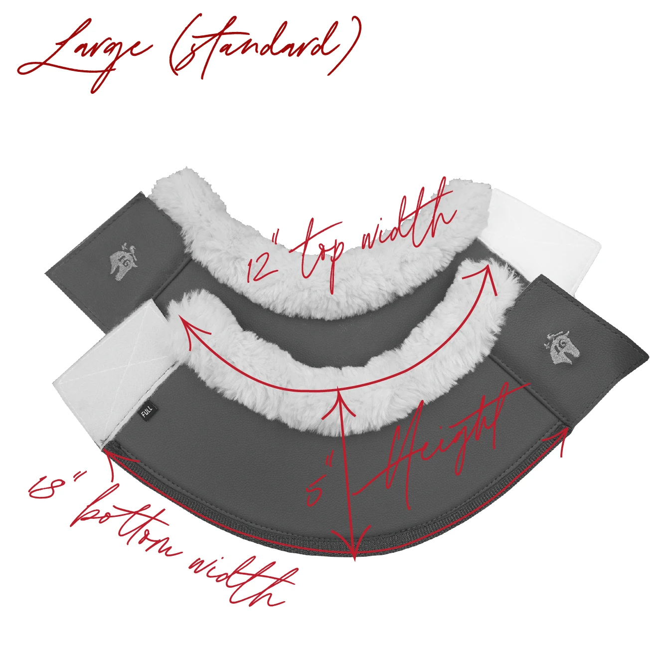 Constructed with a neoprene foam base & leatherette, leather alternative outer layer for overreach protection. Faux fur trim for anti-rub & specialized hook & loop closure.