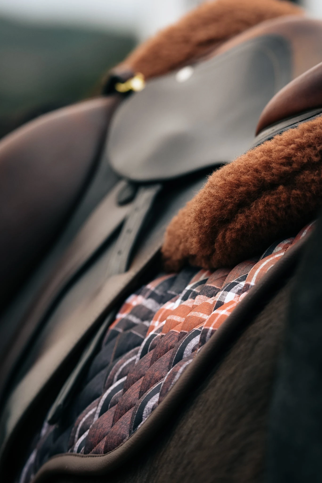 Wool fleece half pad with a quilted cotton base, hickory brown Merino wool fleece & leatherette finish. Designed with wither relief and to support our range of 16C saddle pads. Non-slip, shock absorbent, breathable support. Easy care.
