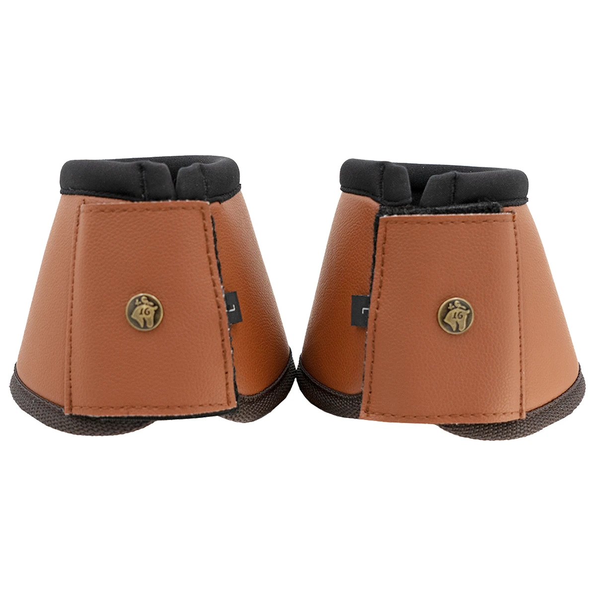 Constructed with a neoprene foam base & leatherette, leather alternative outer layer for overreach protection. Soft padding on top edge with hook & loop closure. Finished in 16C brass medallion rivet.