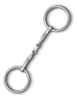 The loose ring is a simple stainless steel “O” shape where both the bridle and mouthpiece have no fixed point of attachment but slide freely around the ring. The loose ring allows a lot of play as the mouthpiece slides freely around the ring.