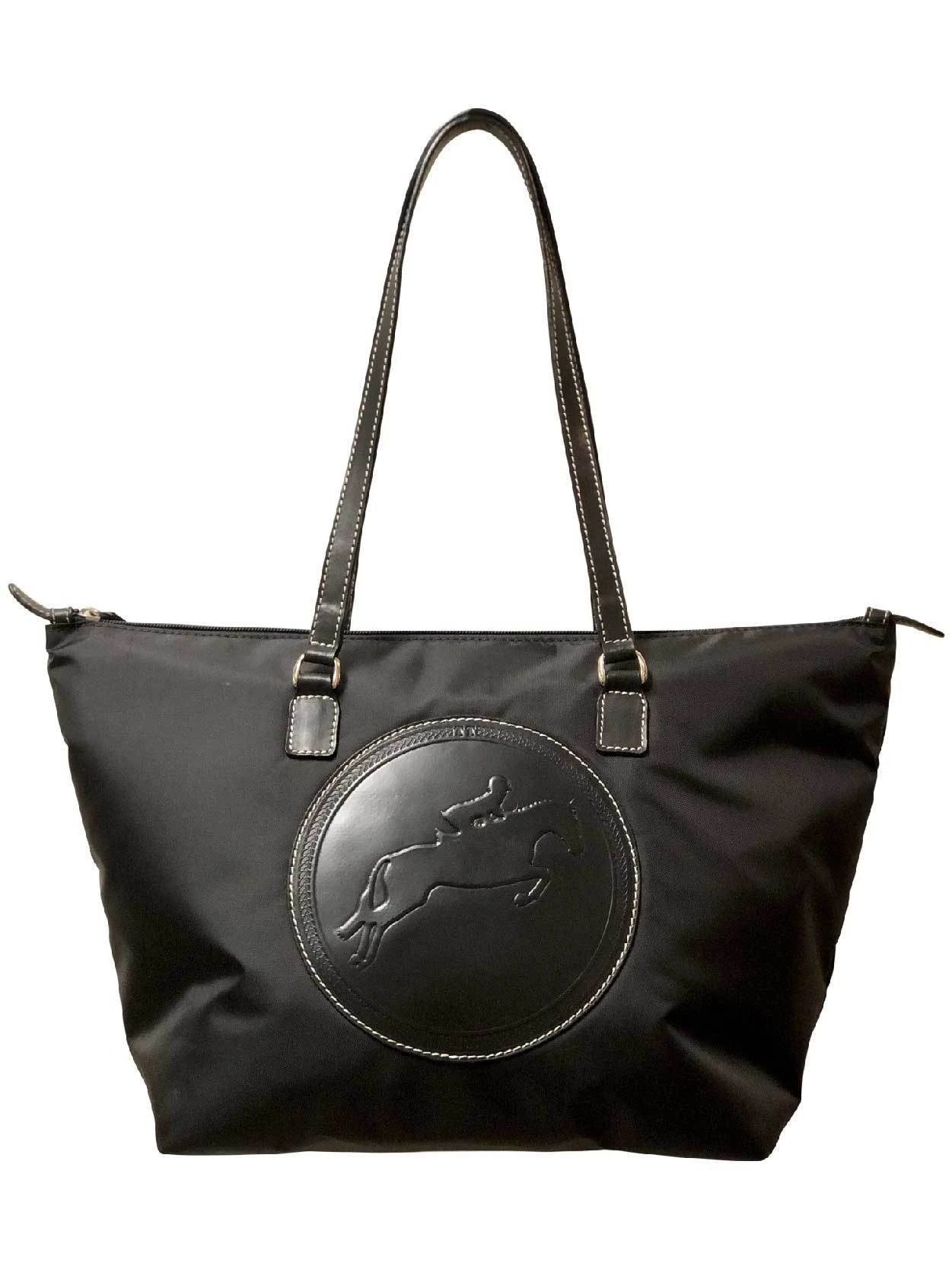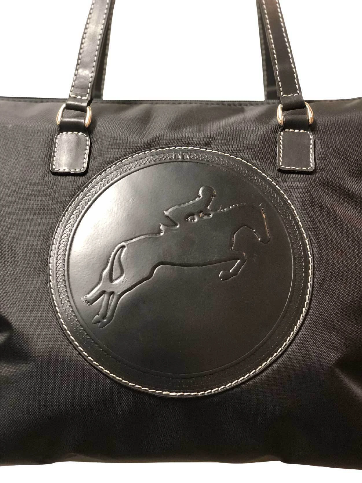 Nodding respectfully to the oldest and most iconic horse show grounds, we proudly introduce the Devon Day Bag…the ultimate complement to the Tryon Travel Series Overnight. Requested by riders the moment the larger version debuted, this stylish shoulder bag is perfectly designed for daily use. Featuring padded heavy/duty 900d black nylon with full grain smooth leather accents in tones of chestnut or black. Comfort continues with supple oil-rubbed leather shoulder straps featuring a 12” drop. Refined interior complete with private zip pocket, embossed logo patch and 2 open pockets.
