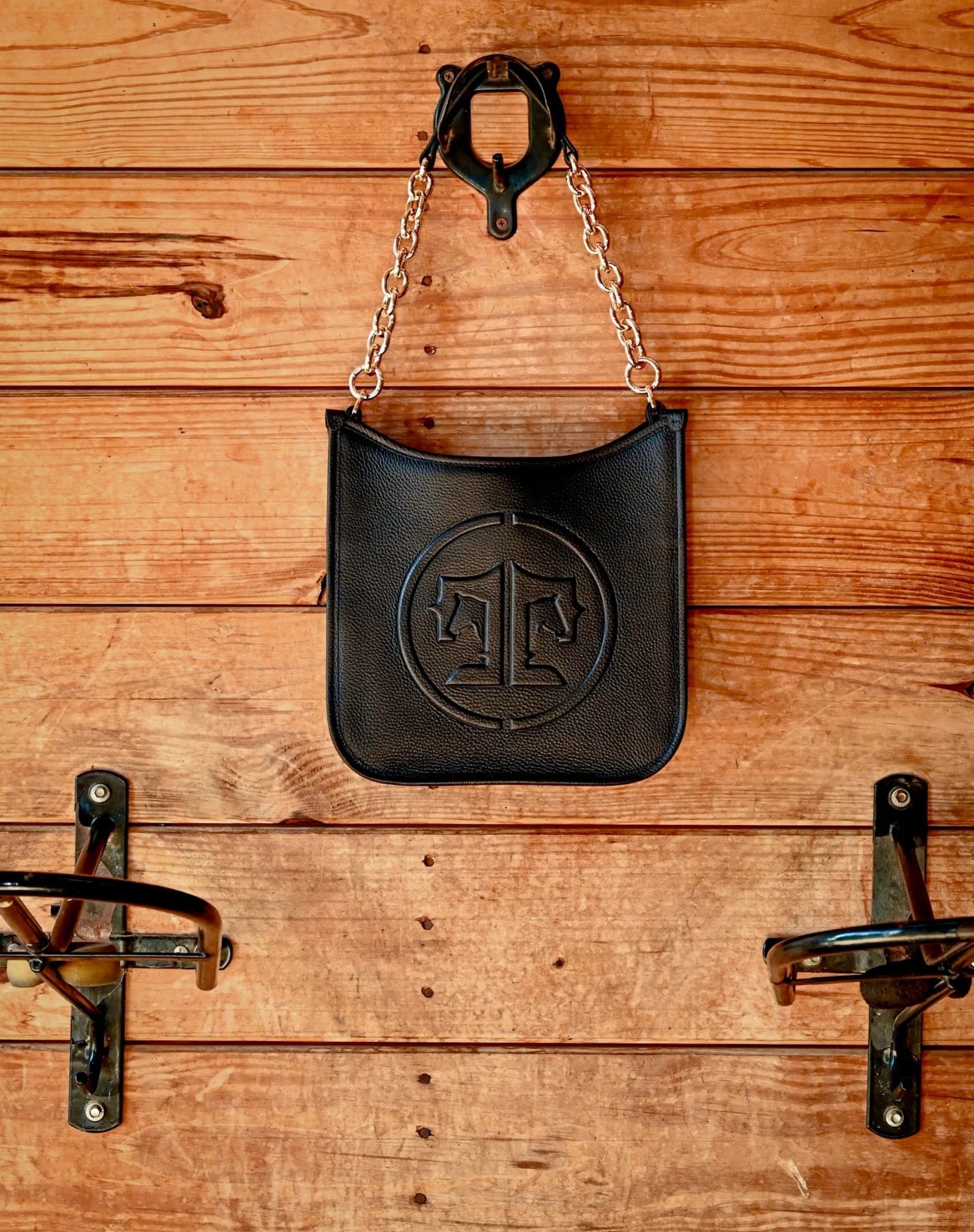 We love this Middleburg Messenger, Signature handbag—a luxurious tribute to Middleburg, VA, the Nation’s Horse and Hunt Capital. Crafted from pebble grain embossed leather in black or camel, it features gold hardware, a vanilla-lined interior with multiple pockets, and a secure magnet closure. Customize with embossing options like Hunter/Jumper or Foxhunting, and enjoy versatile carrying with a removable chunky gold chain and adjustable crossbody strap. Plus, it perfectly fits the Wellington Wristlet, combining style and practicality for your everyday adventures.
