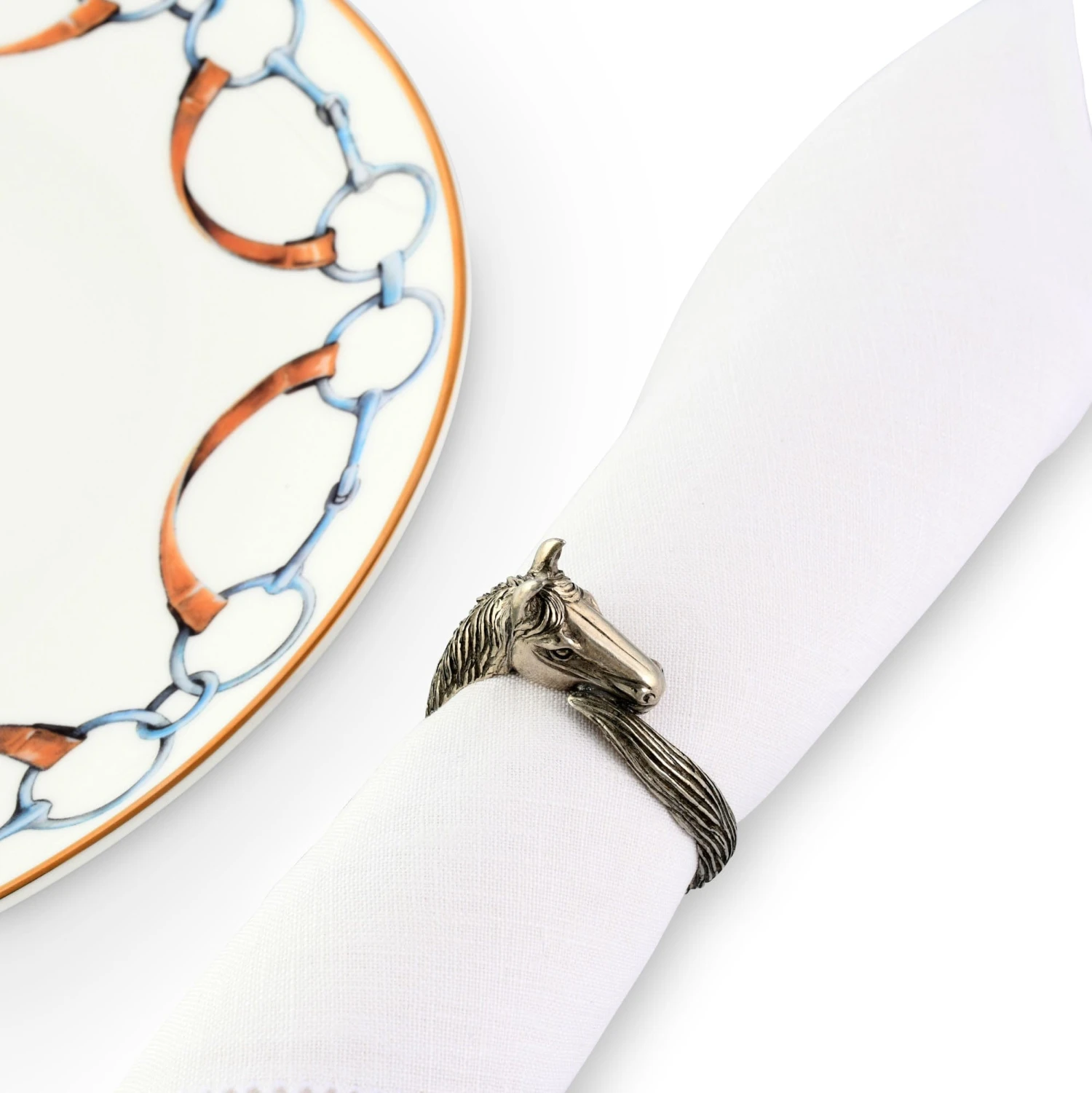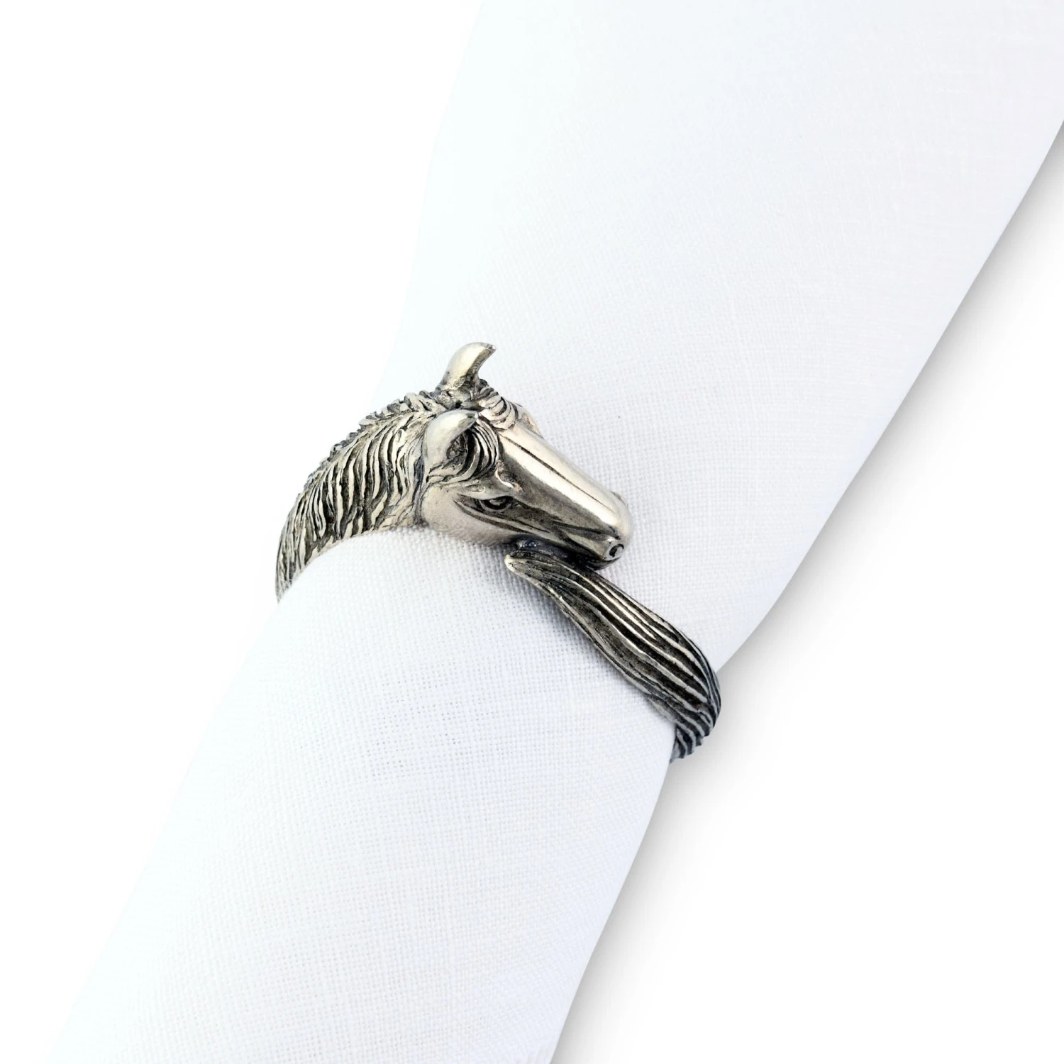 Set a beautifully appointed dinner table that reflects your equestrian passion with this handcrafted horse head napkin ring. Gracefully curved and intricately detailed, this captivating artisanal piece makes a subtle statement in an artfully elegant way.